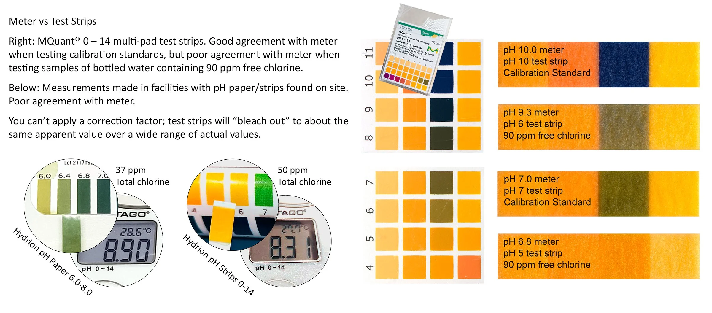 Incorrect measurements may be worse than no measurements at all because they can give one a false sense that everything is okay when it is not. More than once, I have seen test strip results used as an argument for not controlling pH with an acidifying agent when actual pH was clearly too high as measured with an accurate, properly calibrated meter.
